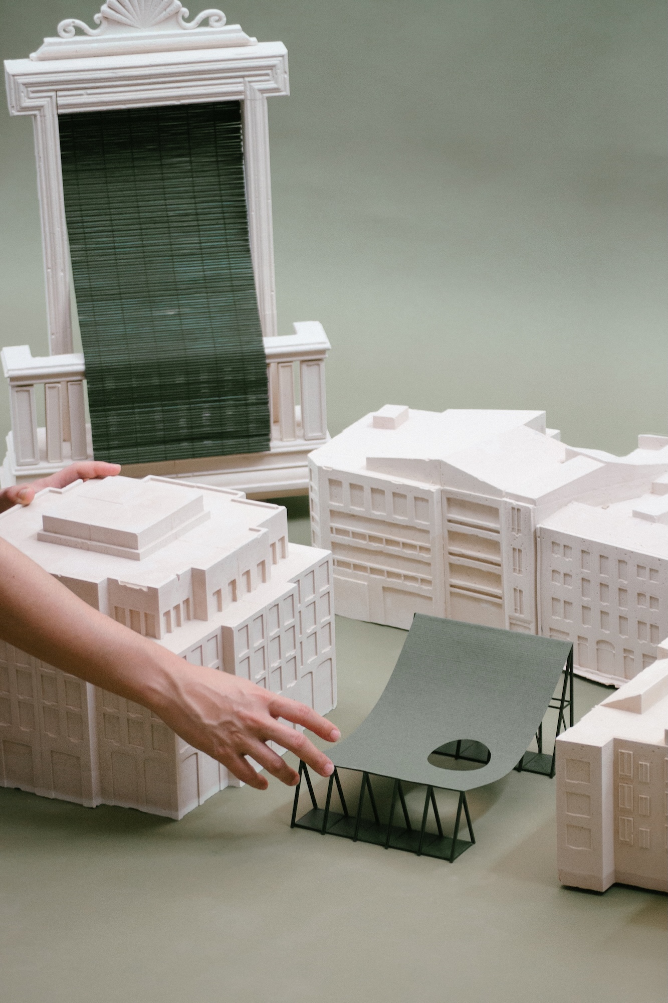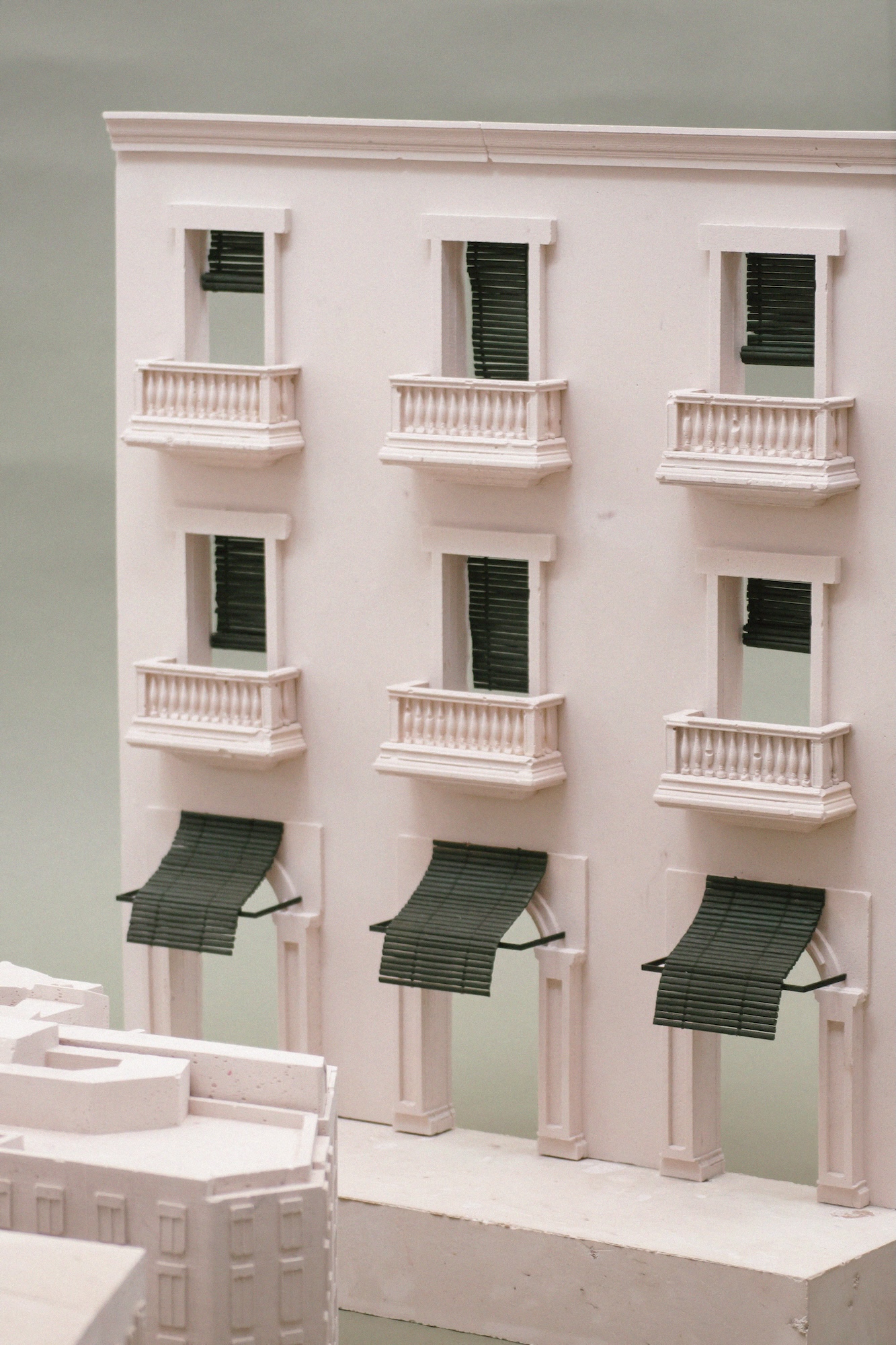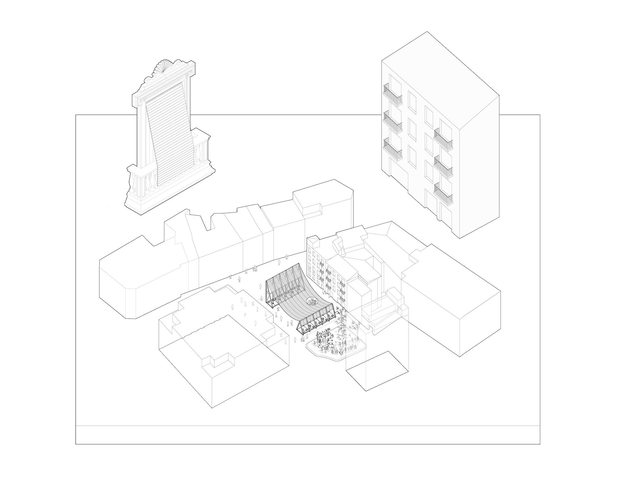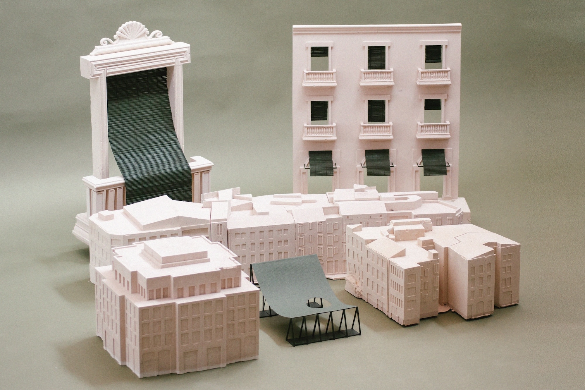 4ºC Entre Toi et Moi took place at the ENSA Versailles in the summer of 2025. It was curated by Sana Frini and Philippe Rahm, who invited more than a dozen universities, along with 58 contemporary architectural firms, to explore architectural solutions envisioning Paris in the year 2100 under conditions of extreme heat and intense seasonal rainfall. Our contribution, titled Persiana Mediterránea, investigates a vernacular architectural element widely found across the Mediterranean Sea. This operable, lightweight wooden shutter protects windows from direct sunlight while enabling cross-ventilation, epitomizing a design response tailored to a region’s climate. Today, several contemporary Spanish architects are revisiting the Persiana as a sustainable alternative to energy-intensive mechanical cooling, aiming to reduce heat gain. The project explores the Persiana at three scales through corresponding models: the window (1:5), the façade (1:25), and the plaza (1:100). In doing so, it traces the element’s origins, evolution, and potential futures, such as the Mediterranean pavilion—extending its application from domestic spaces to the public realm.