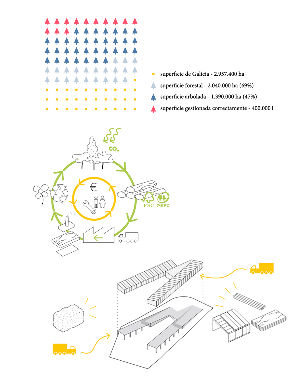 Otium, an ancient Latin term, refers to the physical setting where ancient Roman society engaged in leisure activities. Typically situated amidst natural surroundings, Otium served as a catalyst for nurturing their intellectual curiosity and fostering serenity, meditation, and inner peace. Drawing inspiration from these fundamental principles, our proposal entails a U-shaped building meticulously designed around a green open space that seamlessly integrates the urban environment with the surrounding landscape. The northern section of the building is dedicated to accommodating individual needs and daily activities, while the southern section is conceived as a dynamic and adaptable space. The interconnection between both areas is facilitated by a fluid and versatile zone that addresses both users' circulations and their interaction with the exterior environment. Acknowledging the impact of the construction sector on the surrounding ecosystem, this project embraces a social-ecological commitment to the place in which it is situated. The project seeks to utilize local and bio-based resources, establishing a symbiotic relationship with the region's landscapes and cultural heritage.