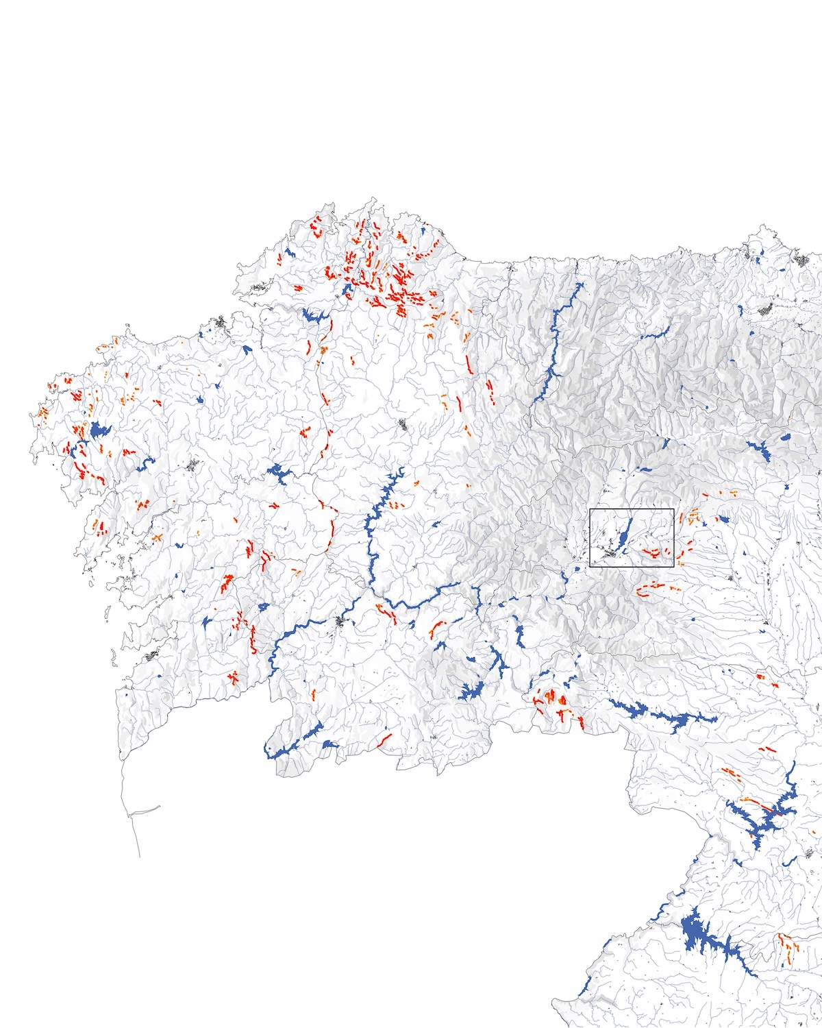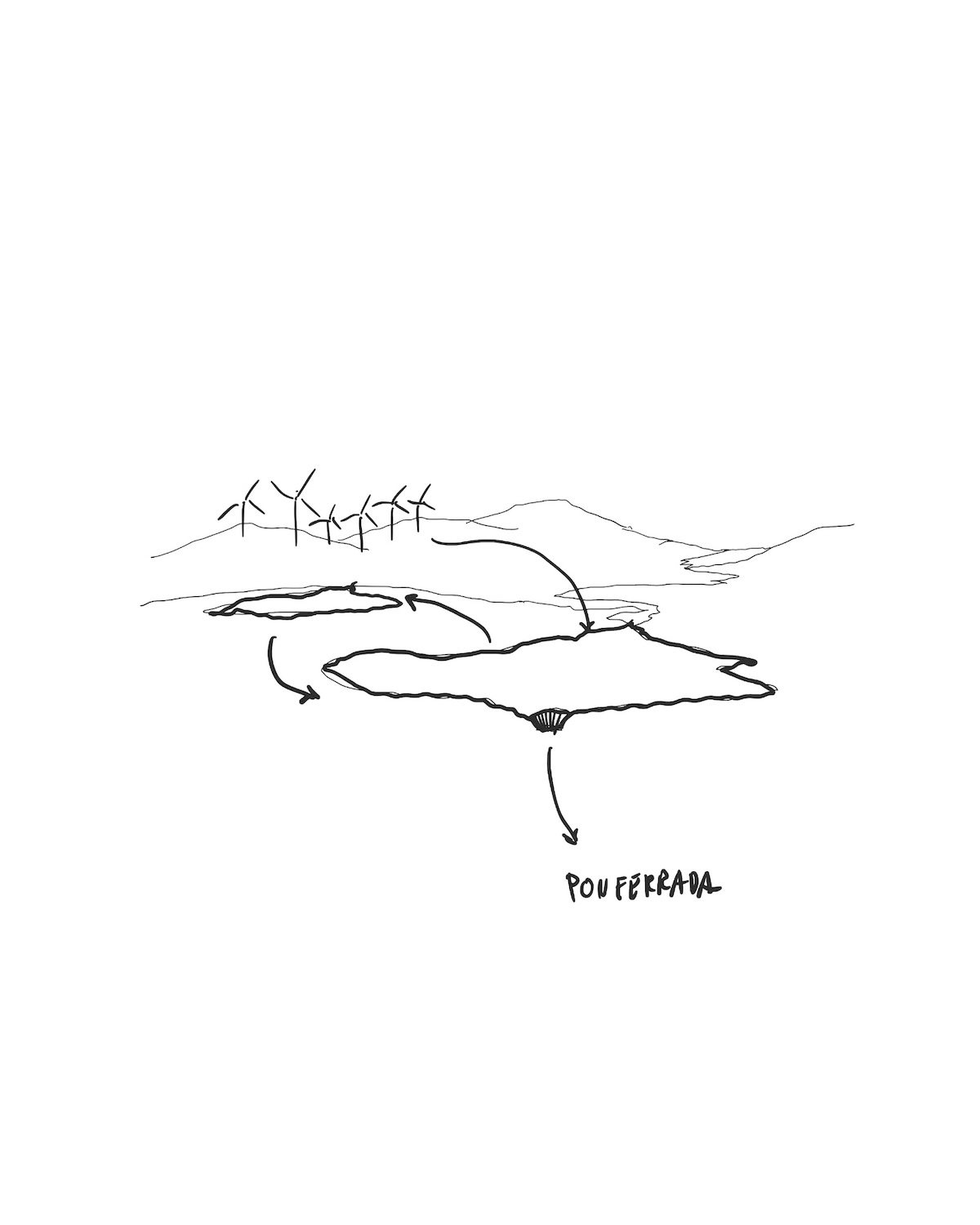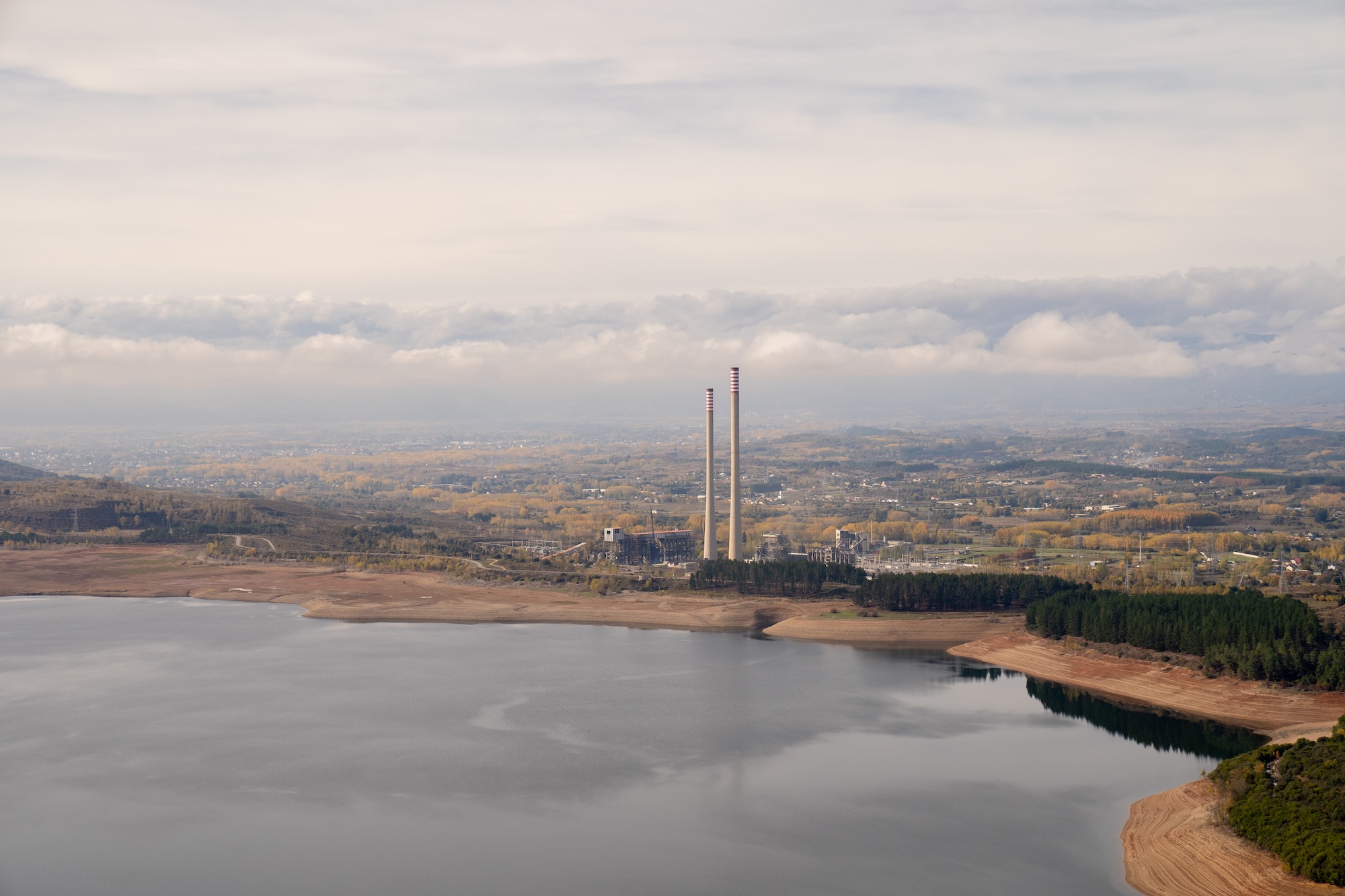 Transition and Gravity is our contribution to Flujos Comunes at the 2025 Spanish Architecture and Urbanism Biennial, curated by Ander Bados and Miguel Ramón. The exhibition explores how architects and planners engage with transnational flows of commodities, energy, people, and data. It takes place in Ponferrada, a territory historically shaped by coal extraction and energy infrastructures, such as the Compostilla power plants—where the exhibition is held. The research examines the energy transition in a region that once powered Spain, focusing on pumped-storage hydropower as a non-extractive alternative for large-scale renewable energy storage. Based on two regional projects under development at the Bárcena reservoir and Navaleo, the research addresses a key challenge of decarbonization: the intermittency of renewable energy. By using surplus wind power to pump water into elevated reservoirs and releasing it during peak demand, energy is stored through geography itself. This approach offers an alternative to lithium-based batteries, avoiding the social and environmental costs of mineral extraction. Through images, cartographies, and models, the project visualizes how the echo of urban expansion is embedded in these vast operationalized technical landscapes. The pumped-storage plant planned for Ponferrada proposes a logic extendable across the northwestern Iberian Peninsula, pointing toward a broader storage system centered on landscape, infrastructural, and ecological design.